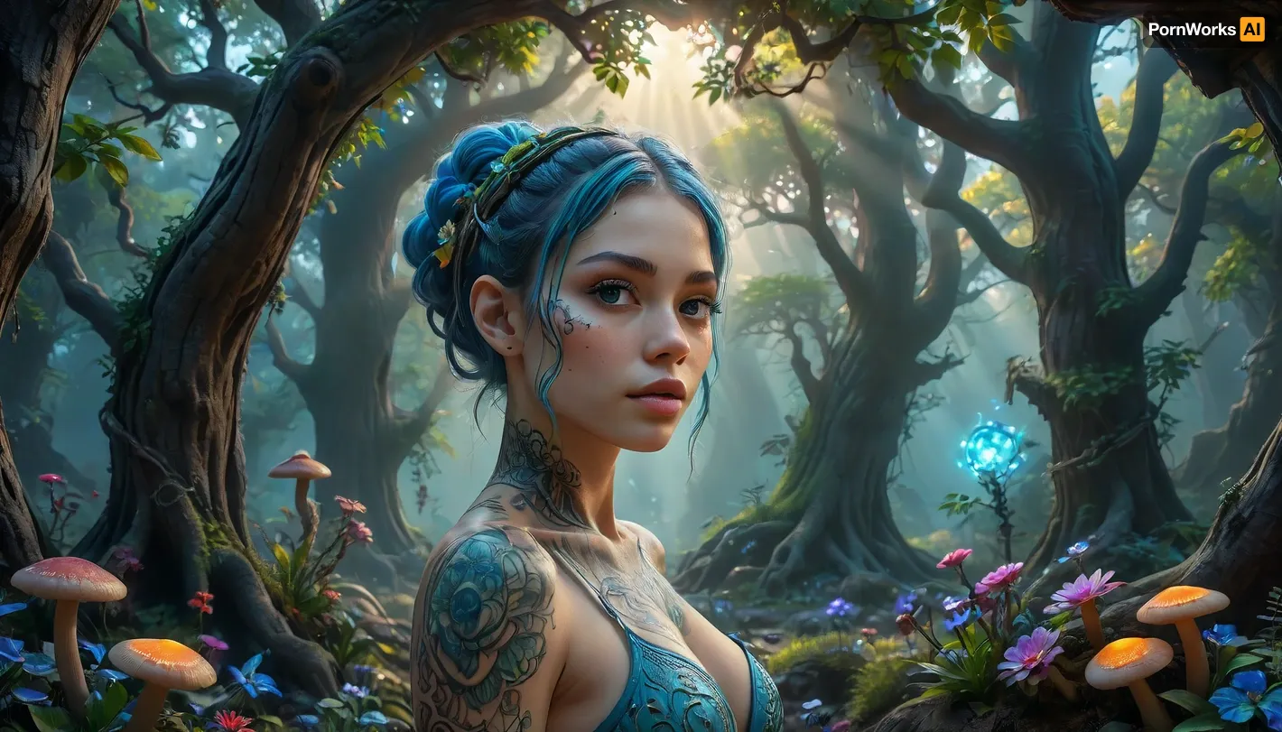 One beautiful bionic tattooed neon blue girl. She stands in a magical, alien forest, with crazy colors, alien plants and animals. There are lots of glowing flowers and mushrooms all around.clouds, sunset, fog, cave, 3nch4nt3d, f0r3st, 4ng3l, face, Internal, Magic, Glow, <lora:Otherwordly_Nature_Concept_Art_VW_Style:.8>, <lora:3nch4nt3d_f0r3st:.8>, <lora:detailed_notrigger:.8>, <lora:SDXL_BetterFaces-LoRA_v1:2>, <lora:Internal_Magic_Glow_XL-000025:.8> One beautiful bionic tattooed neon blue girl. She stands in a magical, alien forest, with crazy colors, alien plants and animals. There are lots of glowing flowers and mushrooms all around.clouds, sunset, fog, cave, 3nch4nt3d, f0r3st, 4ng3l, face, Internal, Magic, Glow, <lora:Otherwordly_Nature_Concept_Art_VW_Style:.8>, <lora:3nch4nt3d_f0r3st:.8>, <lora:detailed_notrigger:.8>, <lora:SDXL_BetterFaces-LoRA_v1:2>, <lora:Internal_Magic_Glow_XL-000025:.8>