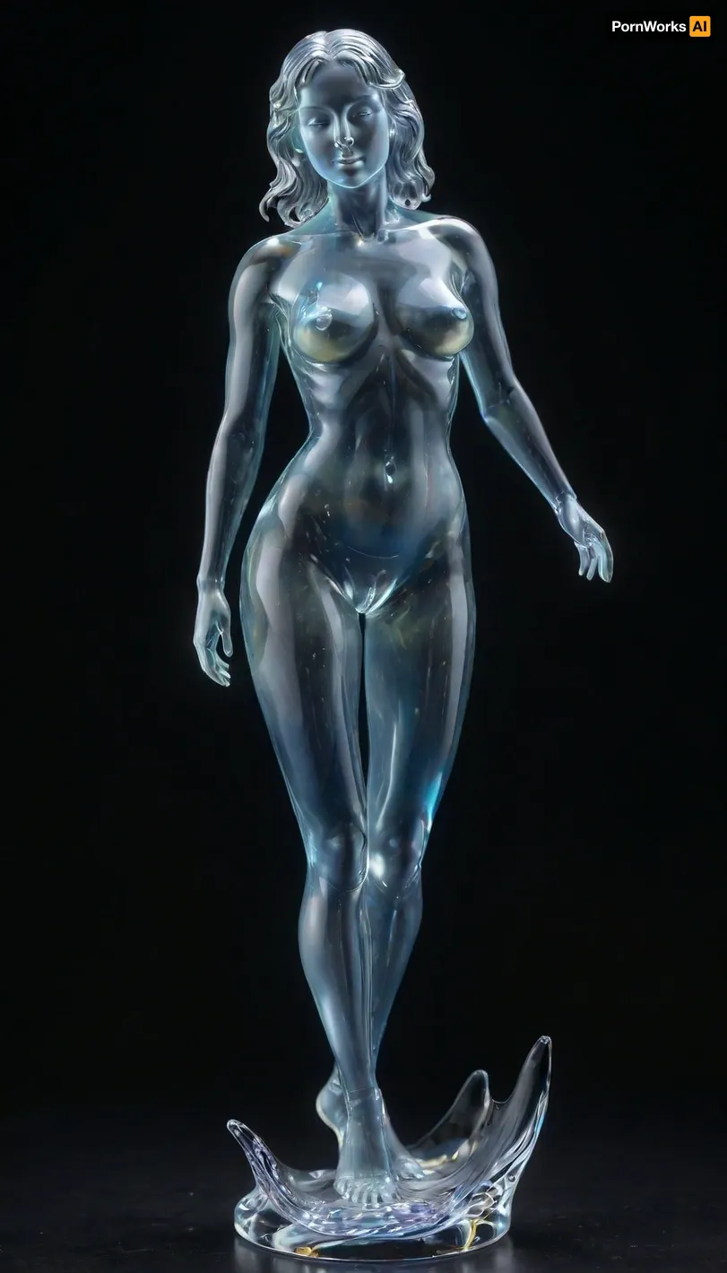 A woman made of translucent, transparent, colorless glass, with a voluptuous female figure. The figure is nude, revealing her internal structure with subtle anatomical details. The glass has a polished, reflective surface that captures and refracts light. Her hair is loose, and her facial expression is neutral., (In a horror dark cave, with little lighting at midnight), . translucent, murano_glass_style, shineglasscd_xl, <lora:sdxl_glass:1.5>, <lora:shineglasscd_xl-000005:1>, <lora:Murano_Glass_Style:.5> A woman made of translucent, transparent, colorless glass, with a voluptuous female figure. The figure is nude, revealing her internal structure with subtle anatomical details. The glass has a polished, reflective surface that captures and refracts light. Her hair is loose, and her facial expression is neutral., (In a horror dark cave, with little lighting at midnight), . translucent, murano_glass_style, shineglasscd_xl, <lora:sdxl_glass:1.5>, <lora:shineglasscd_xl-000005:1>, <lora:Murano_Glass_Style:.5>