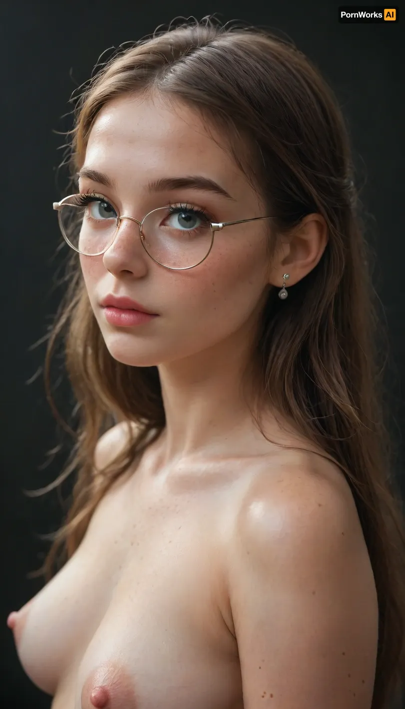 young beautiful Jewish girl 19 yo, freckles on face, big space eyes, long tall hair, big long eyelashes, moles freckles spots all over body, (puffy nipples), pretty face, simple makeup, big thin round glasses, big round eyes, top view, side view, ((shiny shiny boobs)) young beautiful Jewish girl 19 yo, freckles on face, big space eyes, long tall hair, big long eyelashes, moles freckles spots all over body, (puffy nipples), pretty face, simple makeup, big thin round glasses, big round eyes, top view, side view, ((shiny shiny boobs))