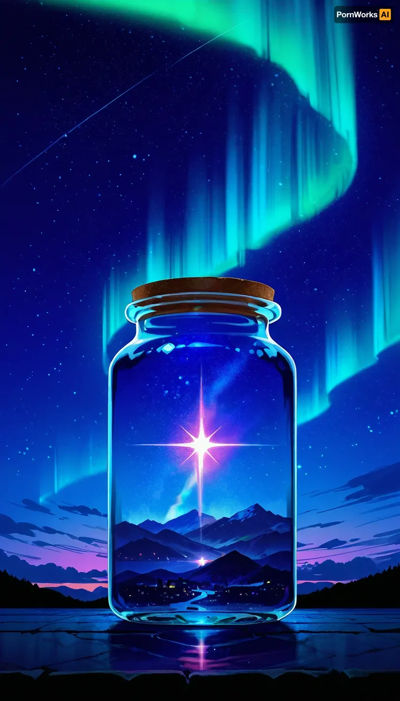 SK_Anime, (score_9, score_8_up, score_7_up), (northern lights, aurora, colorful night sky), mason jar