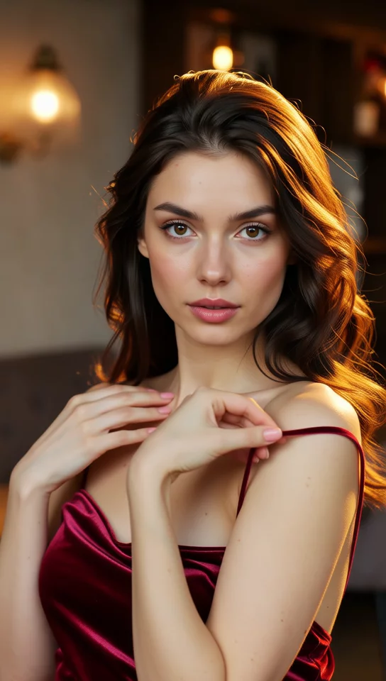 Im warmen nächtlichen Licht eines luxuriösen Schlafzimmers sitzen zwei Frauen mit langen braunen Haaren an einer Kerze. Die Kerzen werfen einen weichen Glanz um sie herum, da sie die raffinierte Eleganz ihrer Dessous genießen. Eine 25-jährige blonde Frau lächelt leicht, ihr weißer Spitzenpendlergürtel fängt das Licht ein. Ihr Partner, ebenso schön, entfernt ihren Balkon-BH mit Stickmustern und enthüllt ihre Kurven. Die Luft ist voller Vorfreude, da sie sich auszieht und ihre Nippel in der chiaroscuro Beleuchtung zeigt.