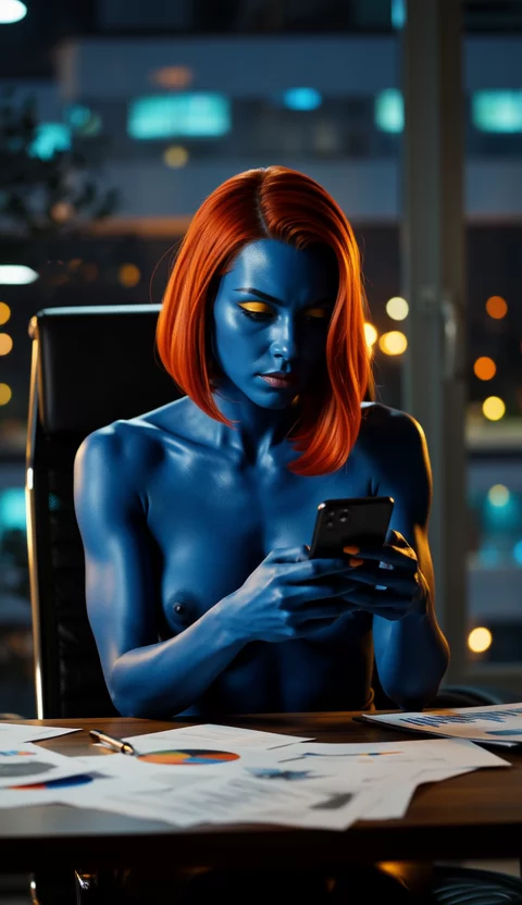 Eine 25-jährige Frau mit einer schlanken Stundenglasfigur, die ein sexy, schwarz und transparentes Outfit trägt, das ihre Kurven zeigt, darunter ihre Nippel und Muschi. Ihre langen, fließenden Knöpfe ergänzen ihre Allure, wie sie mit ihren Armen aufsteht, die Palmen auf der Rückseite ihres Kopfes ruhen. Eine zarte Halskette ergänzt ihre atemberaubende Schönheit, während ihre hohen Fersen sorgen, dass sie Aufmerksamkeit befiehlt. Dies ist ein Meisterwerk von Stil und Vertrauen.