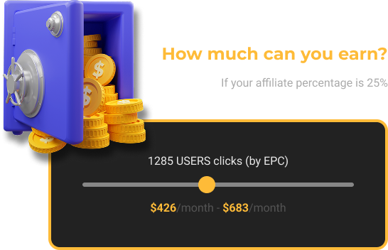Just compare your earnings per click (EPC) with ours versus the competition — you’ll likely be surprised. We’re confident that our EPC outperforms most of the market, meaning you earn more with us, even at 25%.