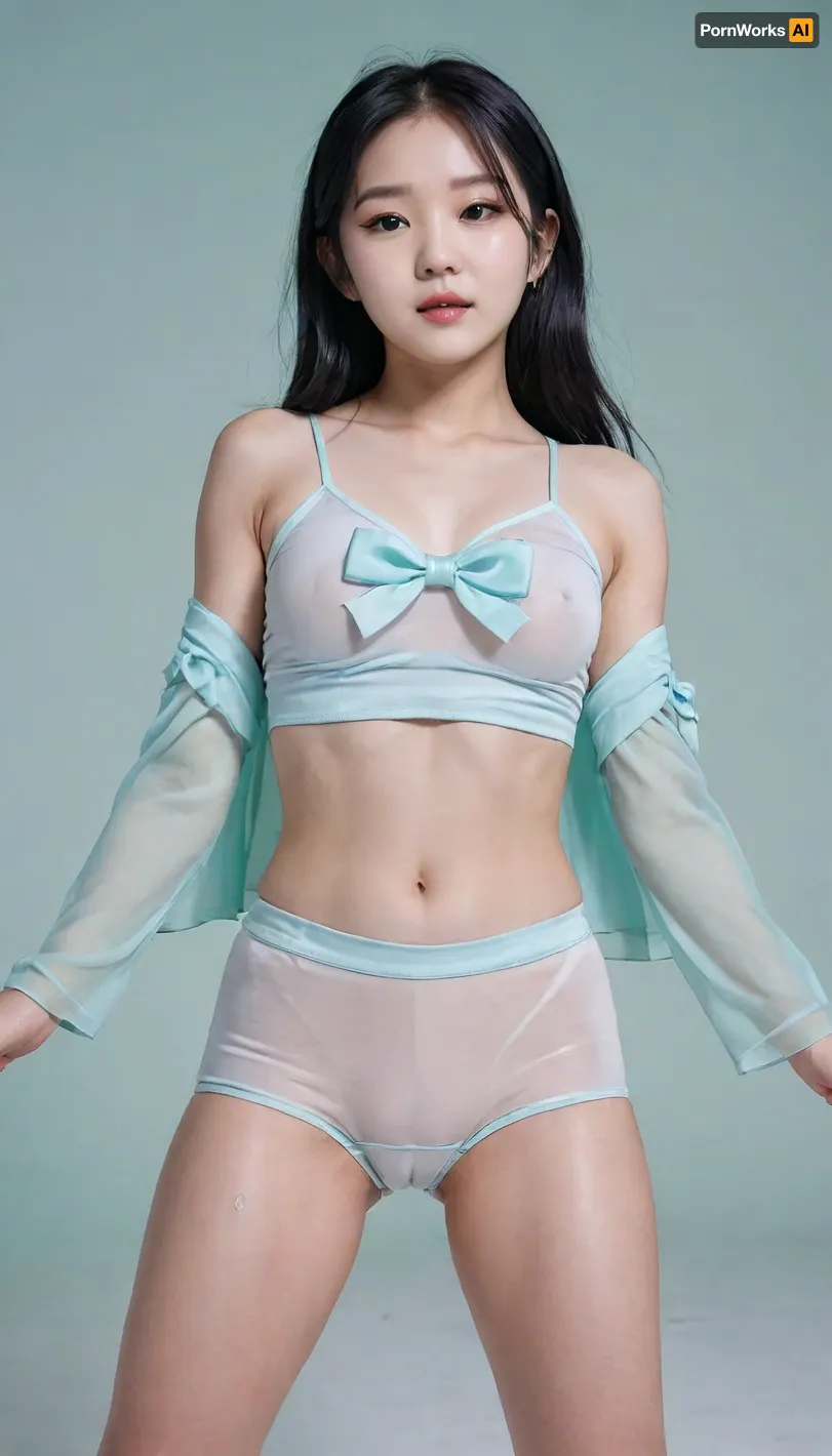 Professional full-body photograph of a cute, petite, youthful Korean K-pop star with long black hair, captured in a dynamic dance pose. She is wearing a modern, stylish stage outfit consisting of mint-green high-waisted tailored fabric shorts and a soft baby-blue cropped bolero-style top over a white silken camisole. The outfit features cute details like small blue bows and sheer organza layers, creating a fresh and sweet aesthetic. Specifically featuring a black strap around her left thigh. She has a sweet, slightly shy and hesitant smile. The setting is a bright, modern stage with soft sea-foam green and sky-blue lighting. High-fashion K-pop idol aesthetic, sharp focus, cinematic atmosphere, braless, Wearing, clothes, that, make, sense, with, Braless>, <lora:bralessSDXL_v1_00022:.8>, cameltoe, <lora:cameltoe XL:.8> Professional full-body photograph of a cute, petite, youthful Korean K-pop star with long black hair, captured in a dynamic dance pose. She is wearing a modern, stylish stage outfit consisting of mint-green high-waisted tailored fabric shorts and a soft baby-blue cropped bolero-style top over a white silken camisole. The outfit features cute details like small blue bows and sheer organza layers, creating a fresh and sweet aesthetic. Specifically featuring a black strap around her left thigh. She has a sweet, slightly shy and hesitant smile. The setting is a bright, modern stage with soft sea-foam green and sky-blue lighting. High-fashion K-pop idol aesthetic, sharp focus, cinematic atmosphere, braless, Wearing, clothes, that, make, sense, with, Braless>, <lora:bralessSDXL_v1_00022:.8>, cameltoe, <lora:cameltoe XL:.8>