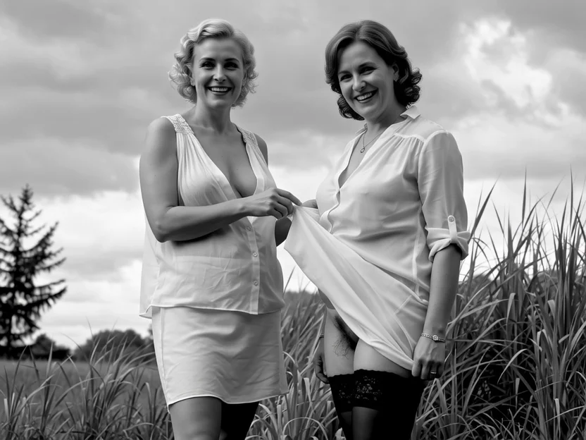 A shocking cartoon animation depicting a mature woman with blonde pixie hair and lots of jewelry lying on her back in a prison cell. She wears a very torn tank top, one breast is visible, no panties, and high heels. makeup and expressive facial features show a wondering expression as she is gang raped by ugly tattooed men in prison. The animation style combines classic cartoon elements with 2D cel animation lighting and flat, even composition.