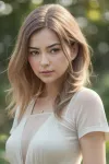 UHD 8K, cinematic masterpiece, maximum details, maximum quality, maximum realism, masterpiece, award winning photo, extremely detailed face, detailed with reflective highlights, (long curled dark eyelashes:1.2), (delicately arched golden eyebrows:1.2), smooth porcelain-white skin glowing softly under the ambient golden light, realism, passion, lust, ultra realism, extreme realism, maximum detail, realistic face features, Uber realistic, ultra detailed, detailxl, film, professional, 4k, hdr, photographic, ultra realistic, ultra high details, back light, (front view), (dynamic pose), best quality, proper physics, ((random pose)), ((random view angle)) Create a highly photorealistic image captured with a professional full-frame DSLR or mirrorless camera, using a prime lens with a wide aperture in natural lighting conditions.The lens is 75mm.The aperture is f/1.4.The camera perspective should simulate real lens behavior — include correct parallax, perspective compression or expansion, (depending on focal length), and real-world framing such as candid compositions, slightly off-center focus, or over-the-shoulder framing. and real light scattering effects in transparent or reflective materials. Avoid excessive smoothness or symmetry.Background, Background includes realistic sky tone gradients or environmental lighting, (e.g., low-light twinlights, shade gradients), and background blur that follows true optical depth simulation. Colors must be balanced realistically, respecting white balance and real-world color grading, such as mild chromatic aberration near image edges. Ensure accurate anatomy, fabric folds, reflections, light bounce, and focus transitions.Realism, The image must contain authentic, real-world imperfections such as subtle lens distortions, natural grain/noise, bokeh depth of field effects, realistic lighting shadows and highlights, environmental reflections, and accurate ambient occlusion