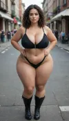 Chicana, fat Busty BIMBO. Knee high boots, cleavage, Fat ass. J cup breasts. Thick thighs. Slutty., large breasts, big boobs. fat ass, huge tits outfit. Revealing outfit, plump, skindentation, chubby, bbw, venus, body, big, breasts, ass, rating, explicit submissive, big_eyes, <lora:bombshell_v2:.5>, <lora:Chubby BBW - XL:.5>