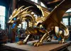The artistic medium appears to be a physical model, meticulously crafted with a high level of detail. The technical execution shows precision in the construction of each component. The style blends the whimsical elements of a fairytale gypsy wagon with the bold lines and aggressive stance of a hot rod. The creative choices include the contrast between the organic shape of the wagon and the rigid lines of the chassis and wheels. The use of varied textures, from the rough tiles of the roof to the smooth chrome of the wheels, is noteworthy.