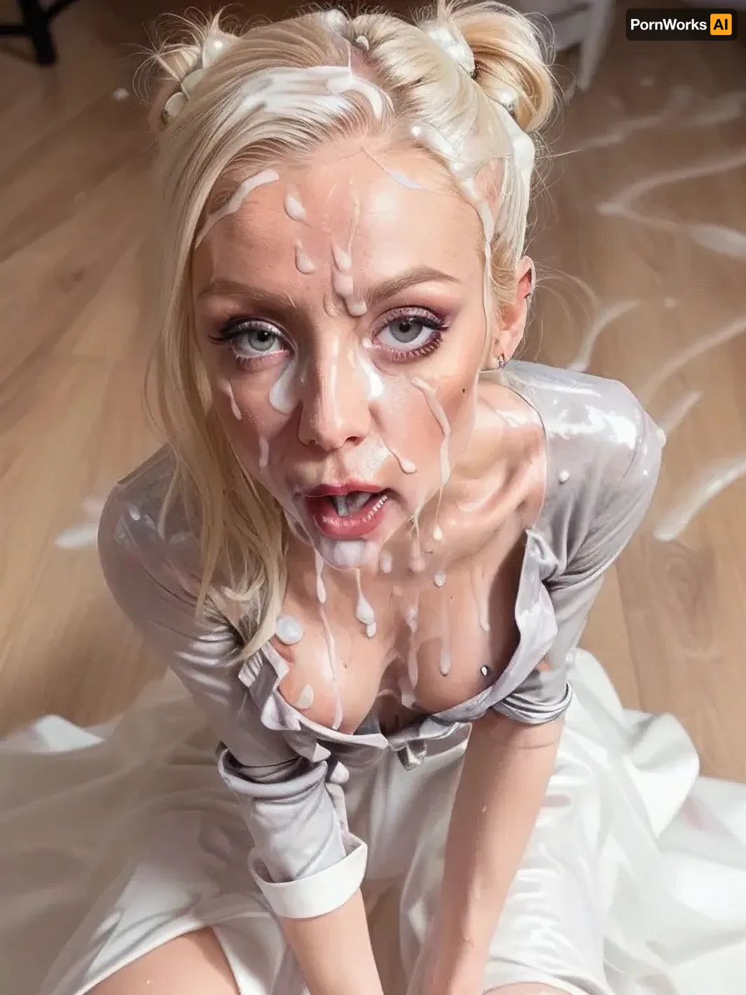 athletic blonde, skinny body, skinny face, sharp features, pale skin, smeared makeup, running makeup, (fully clothed:1.6), Cleavage, hairbun, open mouth, messy hair, full body, (white wedding dress), (cum on face:1.6), Realistic Eyes, Realistic quality, 8k, pov, (masterpiece), best quality, incredible detail, spreading legs, cum facial, (mouth full of cum), covered in cum, cumdrip, after sex, looking at the camera, (small breasts:1.6), Tired, Expression, Tired_Expression, <lora:cum_b1:.5>, <lora:Tired_Expression:.5> athletic blonde, skinny body, skinny face, sharp features, pale skin, smeared makeup, running makeup, (fully clothed:1.6), Cleavage, hairbun, open mouth, messy hair, full body, (white wedding dress), (cum on face:1.6), Realistic Eyes, Realistic quality, 8k, pov, (masterpiece), best quality, incredible detail, spreading legs, cum facial, (mouth full of cum), covered in cum, cumdrip, after sex, looking at the camera, (small breasts:1.6), Tired, Expression, Tired_Expression, <lora:cum_b1:.5>, <lora:Tired_Expression:.5>