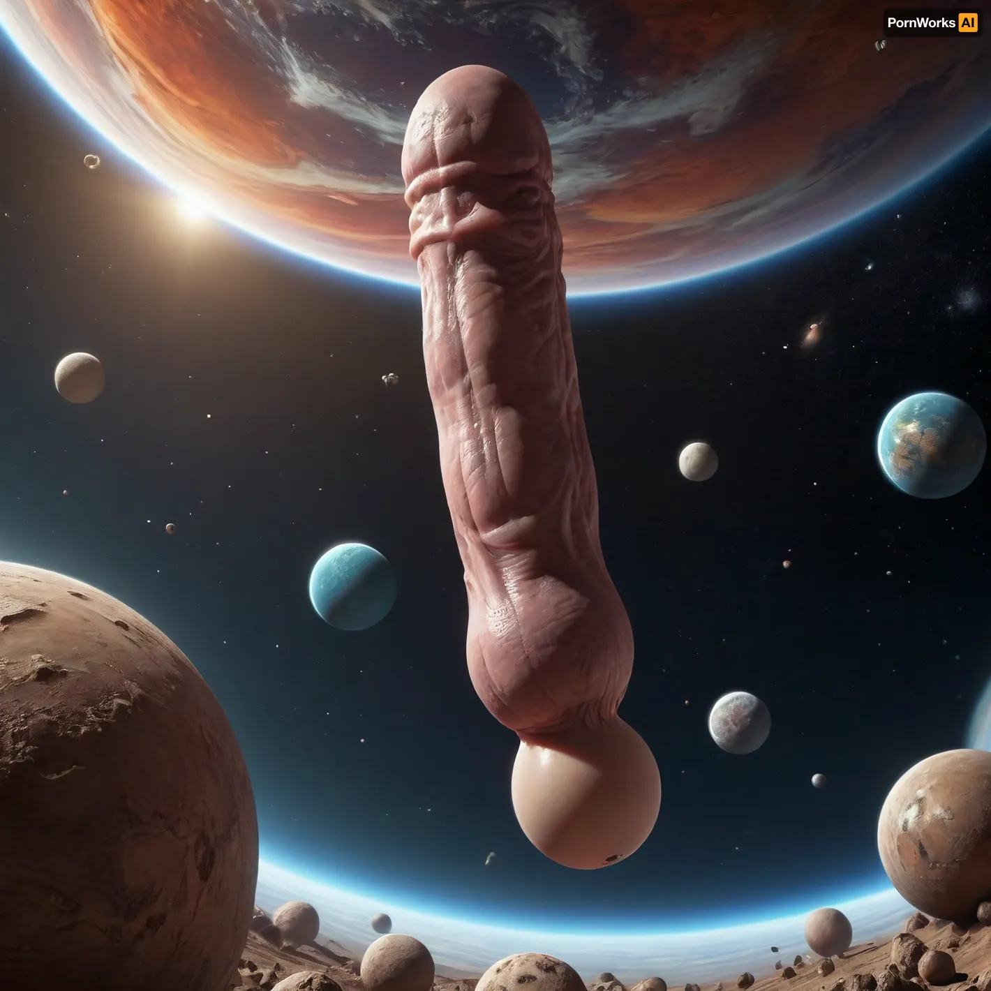 a giant erect penis and balls floating in space a giant erect penis and balls floating in space