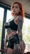 Un portrait en gros plan : le 20yo enchanteur avec des yeux verts, des taches de rousseur et un superbe corps tatoué - Oui. D'une toile numérique émerge une femme de 20yo, ses rousseurs et ses petits tatouages ornant son corps parfait. Sa forme nue déclenche une réponse intense, tout en se concentrant sur son cœur brillant - deux orbes vertes entourées de tatouages ronds épais. Ses yeux, la couleur des couchers de soleil orange, tiennent une intensité qui ne peut être ignorée. En gros plan, un portrait détaillé de l'avant révèle de petites poitrines tattoées et une chatte rasée tatouée, de grandes aréoles et des pokies debout contre son cul parfait.
