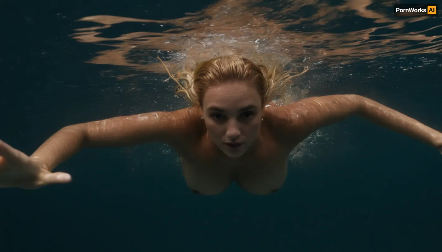 Masterpiece, cinematographic, sunny weather, On a carabbean private island, a ultra modern billionnaire villa in the background, (full view of a small private lake with natural banks and turquoise freshwater:1.1), tropical flowers, tropical trees, (picture from the shore of the lake:1.5), full view of 1 solo woman 20 years old, beautiful danish face, tip-tilted nose, Well-Built, curveceous saggy breasts, completely naked, golden hair, updo hairstyle, wet hair, (swimming face down:1.8), (hands joined underwater in front of her:1.5), (swimming breaststroke:1.5), (she swims towards the viewer:1.5), hands joined in the first breaststroke movement, (head above waterline:1.8), (shoulders above waterline:1.8), (view from outside the water from the shore from above:1.8), (the rest of her body that is underwater is visible through the crystal clear waters:1.8)