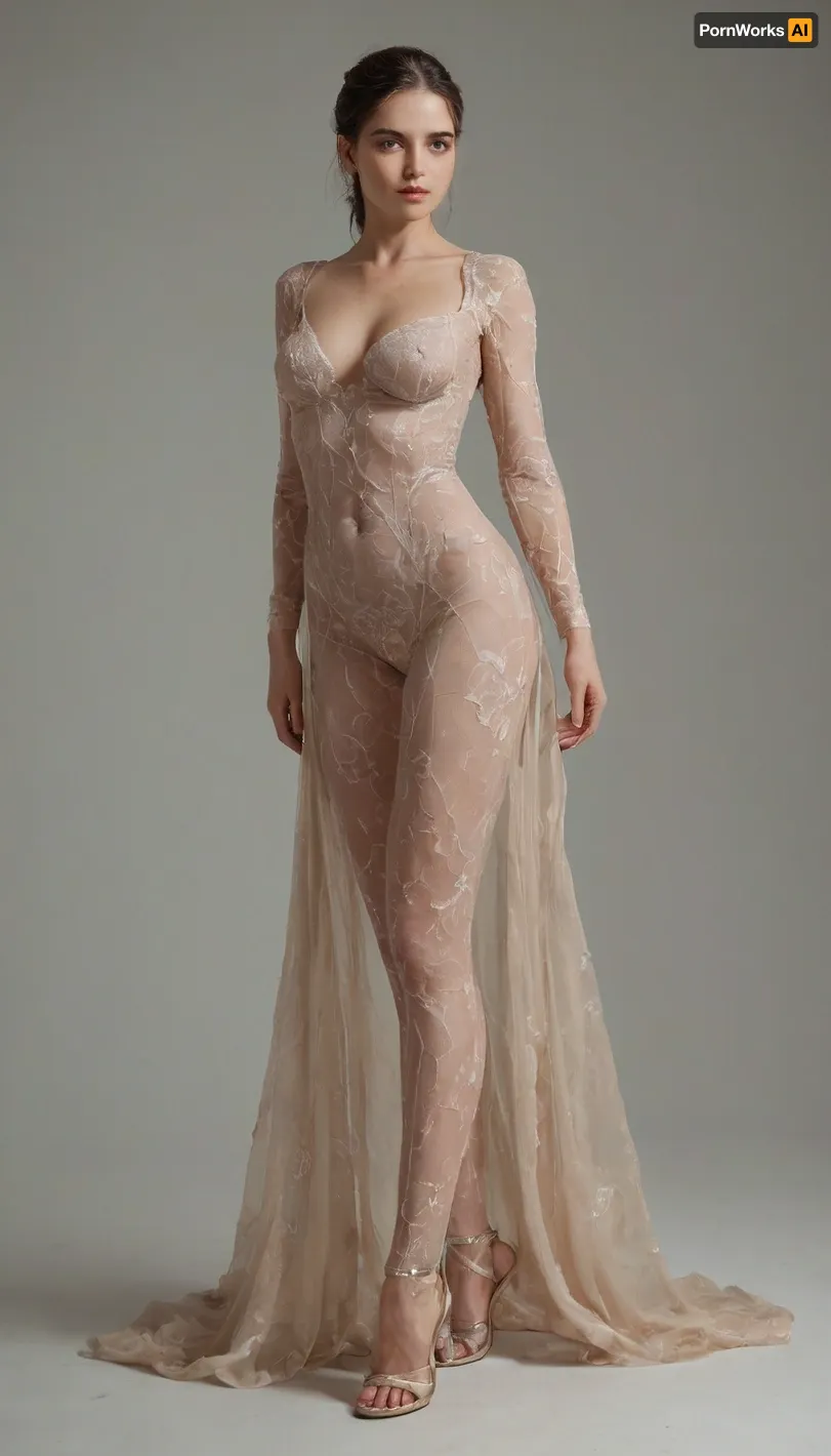 woman, A fashion model with fair skin is showcased wearing an avant-garde bodysuit, drawing inspiration from Iris van Herpen’s complex, intricate designs and Ross Lovegrove’s futuristic style. The bodysuit is crafted from transparent and clear materials, constructed with an elegant, sophisticated structure. Set against a pristine, clean white background, the image focuses sharply on the model, emphasizing the details of the bodysuit. The rendering aims for a hyper-detailed, high-resolution effect, employing techniques to achieve a photorealistic, hyper-realistic look that captures the fine textures and subtleties of the materials and design, her beauty is sexual dream, full-body image, ideal medium breasts, lustful, submissive, flirting, naughty, depraved, kinky, playful, tempted, horny, (high detailed face:1.5), (high detailed skin:1.5), huge emphasis on quality details accuracy and realism in character, realistic female anatomy, wide face, She's 10 out of 10, she is natural beauty, she's a young, she is sexy, score_10, score_9_up, score_8_up, score_7_up, score_6_up, score_5_up, score_4_up, score_3_up, score_2_up, score_1_up, sexy woman, sexy female, perfect skin, extremely beautiful face, ultra high details, vivid colors, detailxl, dvr-shrp, <lora:RMSDXL_Enhance:.8>, <lora:Image Enhancer XL Extreme v1:.3>, <lora:RMSDXL_Creative:.6>, <lora:polyhedron_all_sdxl-000004:.3>, <lora:BUT_SDXL_SHS:.3>