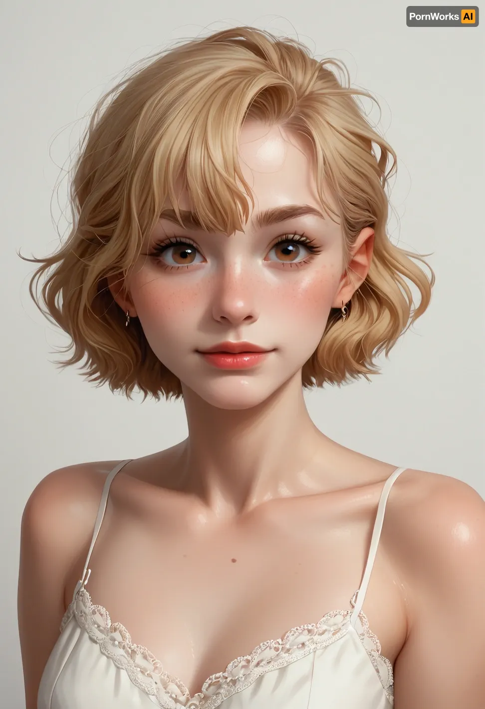 detailed, masterpiece, a woman, score_9, score_8_up, score_7_up, score_6_up, score_5_up, score_4_up, brown eyes, 1girl, (score_9, score_8_up:1.1), , (ashen blonde hair styled in a short pixie-cut with textured waves with dark undertones), flushed cheeks, big eyes, eye contact, excited eyes, twinkling eyes, excited grin, green eyes, pale skin, freckles, elvish features, (incase style), <lora:287175_training_data:1.2> detailed, masterpiece, a woman, score_9, score_8_up, score_7_up, score_6_up, score_5_up, score_4_up, brown eyes, 1girl, (score_9, score_8_up:1.1), , (ashen blonde hair styled in a short pixie-cut with textured waves with dark undertones), flushed cheeks, big eyes, eye contact, excited eyes, twinkling eyes, excited grin, green eyes, pale skin, freckles, elvish features, (incase style), <lora:287175_training_data:1.2>