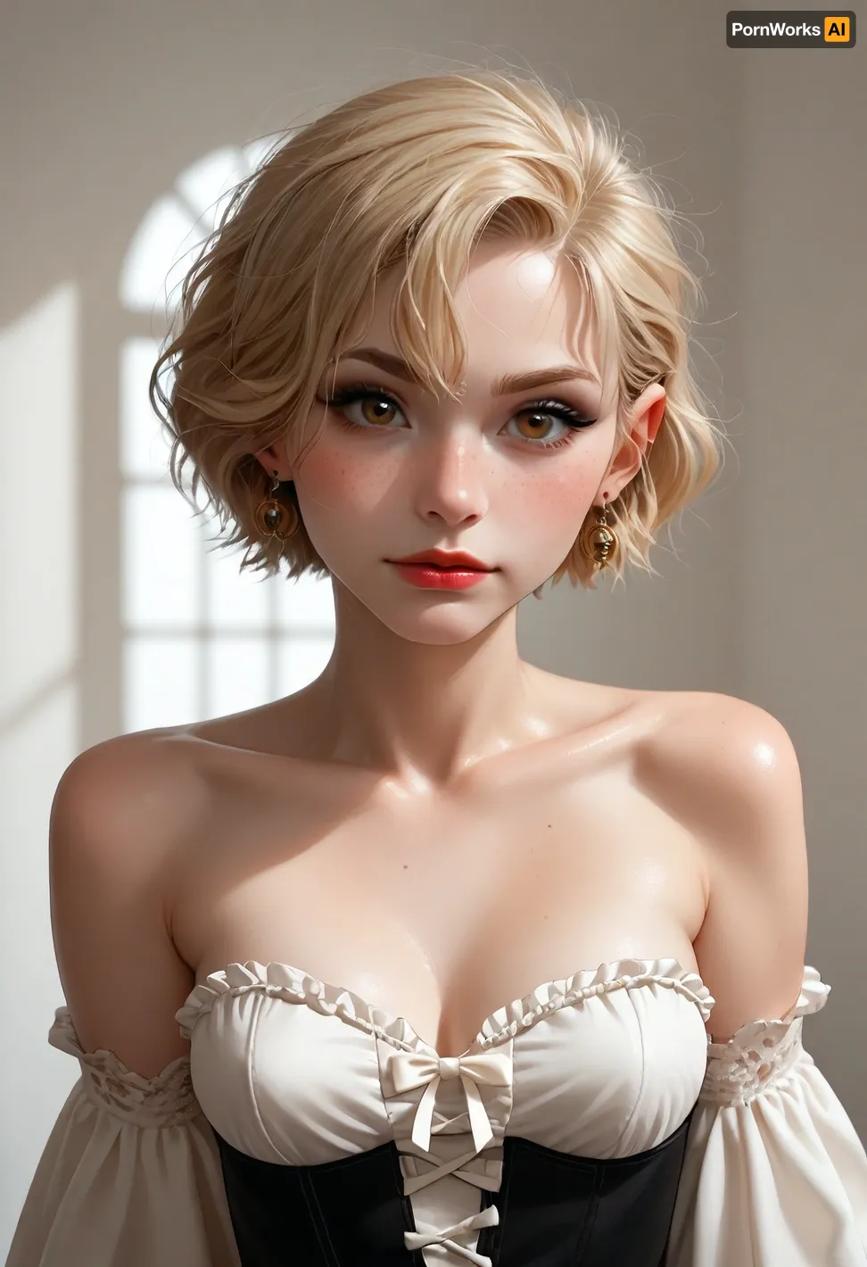 एक ऐसी दुनिया में जहां सुंदरता एक उत्कृष्ट कृति थी, जो शर्मन गोरा बालों और हरी आंखों वाली एक महिला ने हर किसी को लुभाया था। उनकी पिक्सी-कट शैली वाली लहरें, अंधेरे अंडरटोन और पीली त्वचा फ्रेकल्स के साथ उसे अद्वितीय बना दिया। स्कोर_9 प्रणाली ने अपने पूर्णता को मान्यता दी, बोर्ड में उच्च अंक अर्जित किया। वह हर बातचीत पर प्रभुत्व रखती है, उसके दावेदार स्वभाव ने एक स्थायी प्रभाव छोड़ दिया। उनकी सख्त चमड़े की कॉर्सेट और इनकेस शैली ने अपने आत्मविश्वास, गोथिक आकर्षण का प्रदर्शन किया।.
