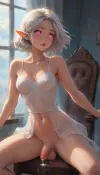 (Dark elf sorceress), glowing pink eyes, (detailed eyes), (perfect eyes), white hair, deep cleavage, seductive gaze, She's sitting back in a cloud chair, the chair is made of clouds, Clouds in the background, surrounded by clouds and sky, her legs are raised and spread apart, her arms are raised, she has short curly white hair, a white transparent blouse, no panties, no stockings, big round boobs, erect nipples, shiny body, toned abs, narrow waist, curvy hips, Profile view, looking from the side, sticking his ass up, testicles hanging down, relaxing pose, soft fog, erotic fantasy lighting, NSFW, masterpiece, highly detailed, futanari, futanari short penis, testicles, erection, ((perfect penis and testicles quality)), futa_overflow, cum in zero gravity, dripping cum at himself, solo, bangs, eye, focus, confused face, sparkle, looking, at, viewer, glowing, eyelashes, <lora:J_cartoon:.3>, <lora:Animated_Concept:.3>, <lora:samdoesarts1.1-000030:.3>, <lora:209970_training_data:.8>, <lora:Jeweled eyes-NAI:.8> (Dark elf sorceress), glowing pink eyes, (detailed eyes), (perfect eyes), white hair, deep cleavage, seductive gaze, She's sitting back in a cloud chair, the chair is made of clouds, Clouds in the background, surrounded by clouds and sky, her legs are raised and spread apart, her arms are raised, she has short curly white hair, a white transparent blouse, no panties, no stockings, big round boobs, erect nipples, shiny body, toned abs, narrow waist, curvy hips, Profile view, looking from the side, sticking his ass up, testicles hanging down, relaxing pose, soft fog, erotic fantasy lighting, NSFW, masterpiece, highly detailed, futanari, futanari short penis, testicles, erection, ((perfect penis and testicles quality)), futa_overflow, cum in zero gravity, dripping cum at himself, solo, bangs, eye, focus, confused face, sparkle, looking, at, viewer, glowing, eyelashes, <lora:J_cartoon:.3>, <lora:Animated_Concept:.3>, <lora:samdoesarts1.1-000030:.3>, <lora:209970_training_data:.8>, <lora:Jeweled eyes-NAI:.8>