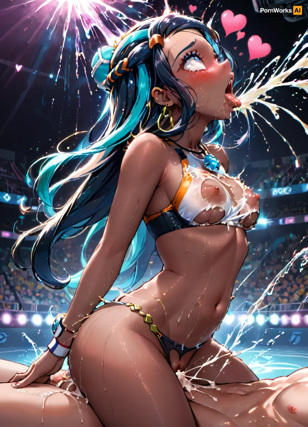 एक अल्ट्रा-डिटेलेड AI-generated छवि में, पोकेमोन से नेसा को एक साइड व्यू में दर्शाया गया था, उसके शरीर को लार और पसीना के साथ चाटना। उसकी फट बिकनी उसके घटने के लिए clung के रूप में वह जोरदार छड़ी, उसके सिर जुनून के घोंसले में वापस फेंक दिया। प्रत्येक संवर्द्धन के साथ, वह धारा निकलना, उसके पेट और छाती पर द्रव चित्रकला पैटर्न का एक झरना। रुरीना, उसके साथी, एक साथ cumming था, उनके दिल उनके छाती के खिलाफ ड्रमबीट की तरह पाउंडिंग, उनके संभोग कमरे के माध्यम से गूंजते थे।.