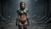 AI ha generato l'immagine di una ragazza top model in un mondo post-apocalittico. Indossa una giacca elegante con una coda di cavallo e porta uno zaino elegante. Le sue grandi labbra e il suo volto sorprendente la fanno risaltare anche nell'ambiente duro. Nonostante il caos intorno, sopravvive con stile, incarnando l'ethos 'Surviving in Style'.