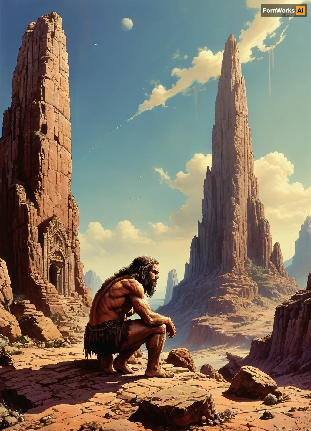 masterpiece, caveman with javelin crouching before large, ornamented monument, style, of, drawix9, dwx9, NEGATIVE_HANDS, Richard, Corben, Style, <lora:tbh235-sdxl:.8>, <lora:drawix9:.8>, <lora:Richard Corben Style:.8> masterpiece, caveman with javelin crouching before large, ornamented monument, style, of, drawix9, dwx9, NEGATIVE_HANDS, Richard, Corben, Style, <lora:tbh235-sdxl:.8>, <lora:drawix9:.8>, <lora:Richard Corben Style:.8>