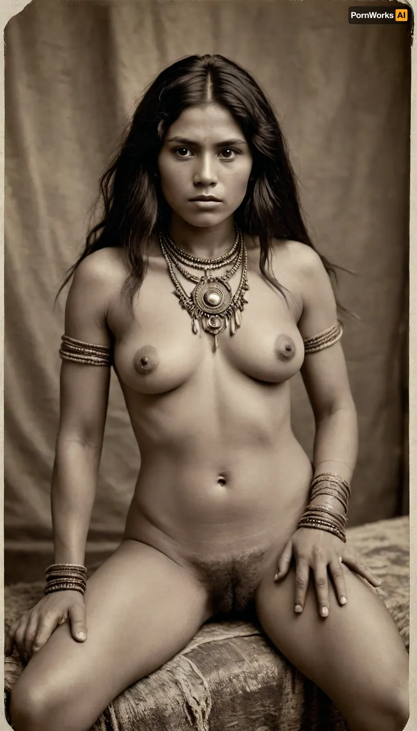 Vintage 1890s, Victorian, chieftainess of an Amazonian Indian tribe, strongly muscled, wild tribal jewelry, completely naked, tousled black hair, exposed pussy, very hairy pussy, pubic hair, 3/4 view, old torn sepia photograph, <lora:old_world:.8> Vintage 1890s, Victorian, chieftainess of an Amazonian Indian tribe, strongly muscled, wild tribal jewelry, completely naked, tousled black hair, exposed pussy, very hairy pussy, pubic hair, 3/4 view, old torn sepia photograph, <lora:old_world:.8>