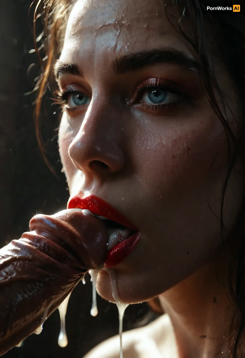 close up of red lipstick lips, sucking passionately, huge perfect hight detailed half erected penis after sex, dripping cum in backlight, texture, photorealistic, <lora:Picture_enhancer:.6>, <lora:Super_Eye_Detailer_By_Stable_Yogi_SDPD0:.3>, <lora:BUT_SDXL_SHS:.6>, <lora:DetailedEyes_V3:.3>, <lora:dark:.4>