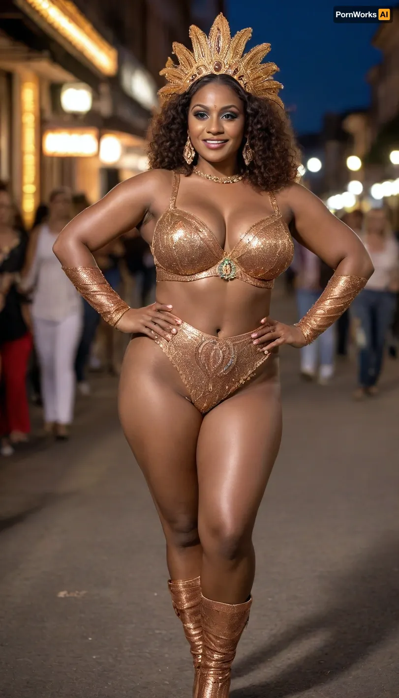 mature brazilian samba dancer, enormous gigantic big plump boobs, luscious breasts, wide thick ass dark brown exotic skin, ((((shiny copper colored skin)))), dancing on the street, carnival, posing, sexy legs, full view mature brazilian samba dancer, enormous gigantic big plump boobs, luscious breasts, wide thick ass dark brown exotic skin, ((((shiny copper colored skin)))), dancing on the street, carnival, posing, sexy legs, full view