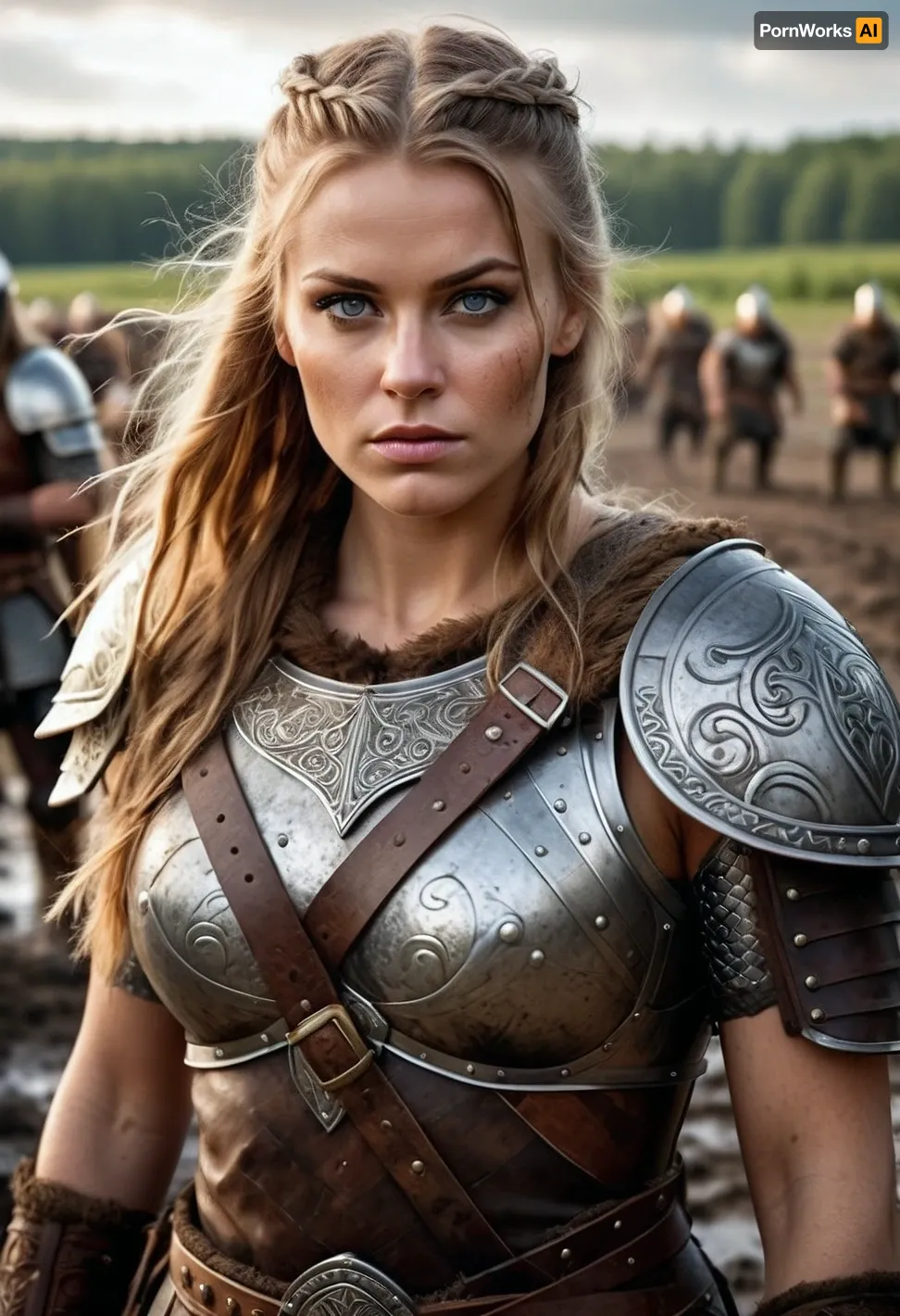woman, a sexy viking soldier, wearing viking armor, long hairs, mud on his face, mud on everywhere, serious look, in a battlefield, masterpiece, high quality, wide angle, full body in picture, professional photography, intricate details on her armor, complex patterns, valhalla, (photorealistic:1.4), (best_quality), (ultra_detailed), beautiful, DSLR, 8k, textured skin, realistic skin, detailed eyes woman, a sexy viking soldier, wearing viking armor, long hairs, mud on his face, mud on everywhere, serious look, in a battlefield, masterpiece, high quality, wide angle, full body in picture, professional photography, intricate details on her armor, complex patterns, valhalla, (photorealistic:1.4), (best_quality), (ultra_detailed), beautiful, DSLR, 8k, textured skin, realistic skin, detailed eyes