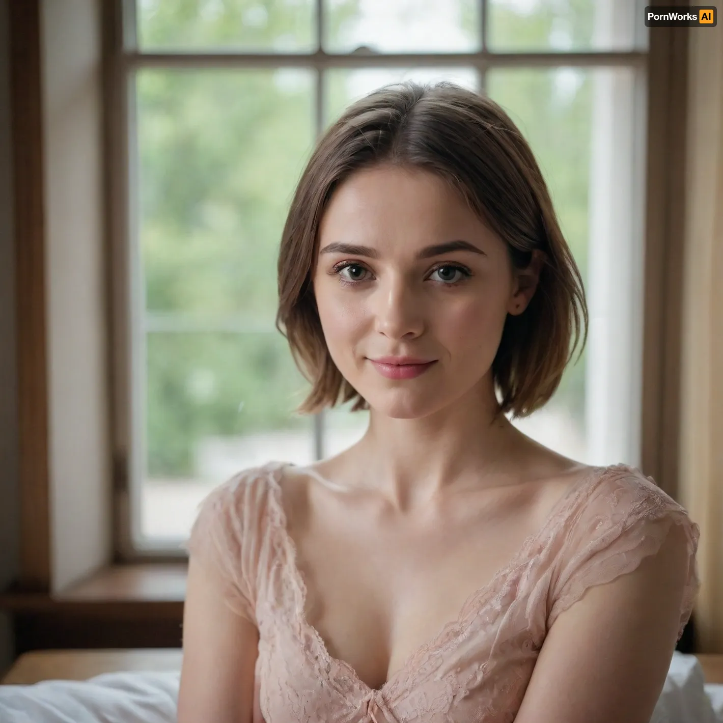22 года, полный рост, 170 сантиметров, стройная, подтянутая, соблазнительные формы, волосы густые, тёмно-каштановые, длинные. Глаза натурально зелёные. Кожа, светлая с лёгким загаром Грудь, 2.5–3 размер, натуральная форма Талия, узкая, соотношение талии к бёдрам ≈ 0.7 Бёдра и ягодицы, округлые, упругие Стиль, спорт + гламур, (теннис, пляжный стиль, бельё, домашние образы), Личность, уверенная, заботливая, спортивная, немного игривая Особенности, маленький пирсинг в носу, яркие эмоции, ухоженные волосы и кожа