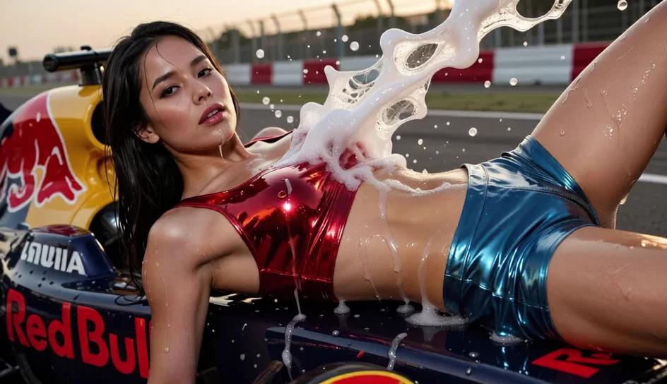 interracial, (two muscular black skin bruts), black penises, black cocks, black dicks, (two black penises), (double painful anal fuck BBC), (anal destroy), ((all black cock anal sex)), (slime on ass), super close up image, micro art photograph of a bengali brunette curvy bride standing on a glossy black velvet floor against a pitch-dark background. Dramatic, cinematic lighting with high contrast and soft shadows., ((Her entire feet, nylon, dark brown pussy, dark brown anus, body, red microskirt are covered in a thick, jelly-like texture. The slime drips slowly from her hair and shoulders, creating a surreal, beautiful, and mysterious effect.)), Visually stunning, surreal, and elegant composition with a focus on the tactile contrast between the slime and the black microskirt against the black velvet., vagina gap, split vagina labia, close_up_detailed_shot_of1, woman, cum, on, face, <lora:close_up_detailed_shot_of1:.8>, <lora:MJ52:.6>, <lora:JustCum:1.2>