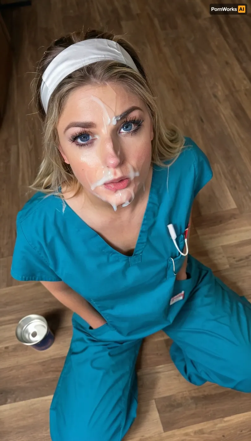 ((cum covered face woman)), (21 year old nurse:1.4), ((wearing blue nurses scrubs, blue nurses scrub top, blue nurses scrub pants:1.5)), ((high angle shot, on knees looking up into the camera:1.3)), ((she's holding an empty plastic sample cup with her hands:1.5)), (soft focus, perfect lighting, professional photography), (ultra realistic, realistic, photorealistic, photo realistic, photorealism, photo realism), (maximum quality, ultra-detailed, insanely detailed, highly detailed, high quality, uncompressed, raw source photograph), (highly detailed eyes, high resolution eyes, high quality eyes, highly detailed skin, detailed skin texture, highly detailed hair), (same color eyes, symmetric eyes, matching eyes, detailed eyes, detailed iris, detailed pupils, limbal ring around iris, perfectly round iris, perfectly round pupils), (striking eyes, captivating eyes, mesmerizing eyes, glittering eyes, Fae eyes), (highly detailed skin, detailed skin texture, highly detailed hair), (bleach blond hair with dark roots, high ponytail), bukkake, facial, breasts, stomach, covered, in, perfect, woman, cum, on, face, <lora:MS_Real_XL_Bukkake:.5>, <lora:Facials:.5>, <lora:JustCum:.5> ((cum covered face woman)), (21 year old nurse:1.4), ((wearing blue nurses scrubs, blue nurses scrub top, blue nurses scrub pants:1.5)), ((high angle shot, on knees looking up into the camera:1.3)), ((she's holding an empty plastic sample cup with her hands:1.5)), (soft focus, perfect lighting, professional photography), (ultra realistic, realistic, photorealistic, photo realistic, photorealism, photo realism), (maximum quality, ultra-detailed, insanely detailed, highly detailed, high quality, uncompressed, raw source photograph), (highly detailed eyes, high resolution eyes, high quality eyes, highly detailed skin, detailed skin texture, highly detailed hair), (same color eyes, symmetric eyes, matching eyes, detailed eyes, detailed iris, detailed pupils, limbal ring around iris, perfectly round iris, perfectly round pupils), (striking eyes, captivating eyes, mesmerizing eyes, glittering eyes, Fae eyes), (highly detailed skin, detailed skin texture, highly detailed hair), (bleach blond hair with dark roots, high ponytail), bukkake, facial, breasts, stomach, covered, in, perfect, woman, cum, on, face, <lora:MS_Real_XL_Bukkake:.5>, <lora:Facials:.5>, <lora:JustCum:.5>