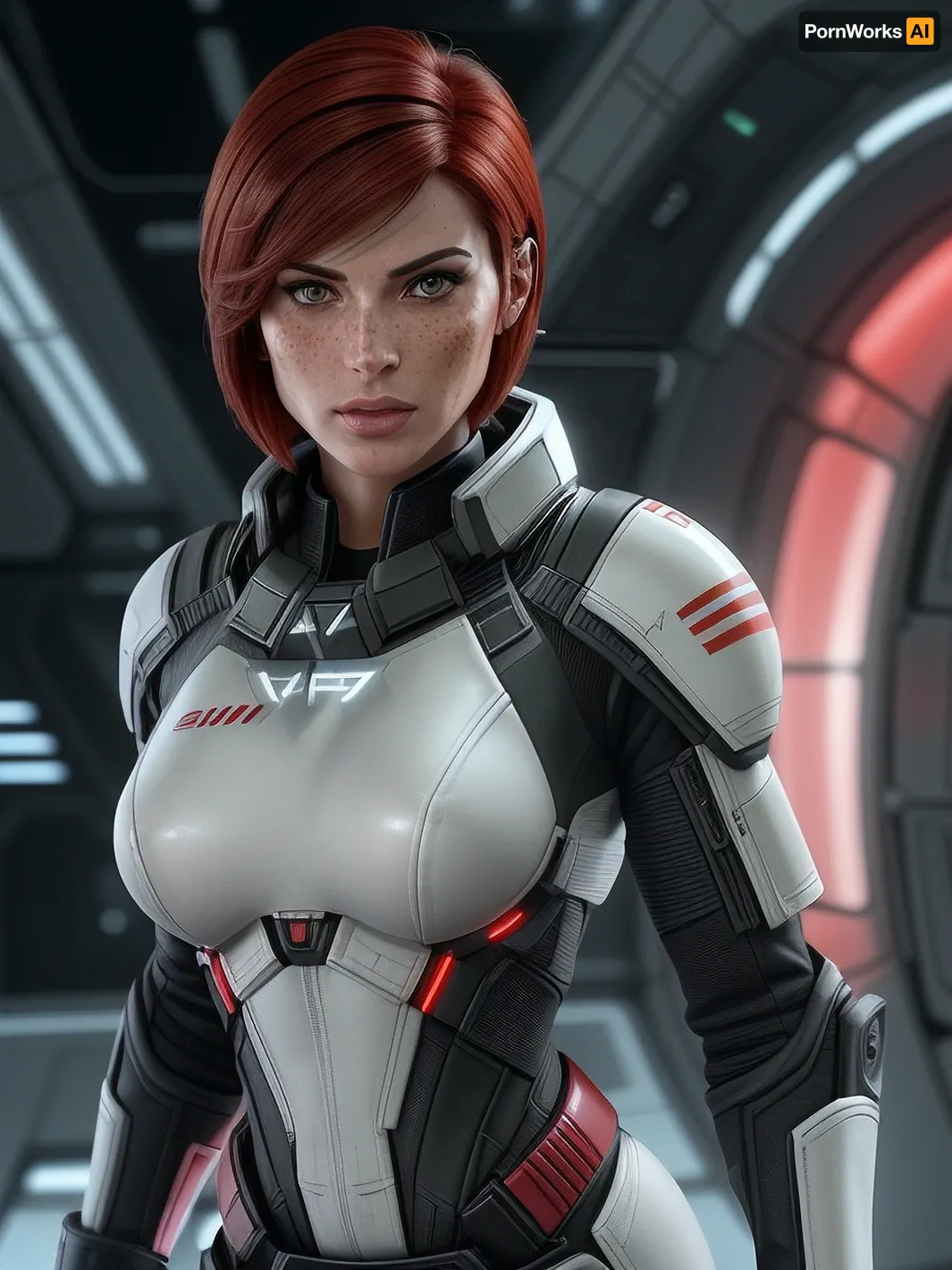 (FemShep from Mass Effect 3), Extremely beautiful athletic woman, (Symmetrical face angular features with high cheekbones and a strong jawline striking and commanding), (Light complexion with subtle pink undertones and freckles), full lips, (Bright red Shoulder length, swept-over side part hair), (Light green sharp and alert eyes), (wearing N7 combat armor — black with red and white detailing, sleek and tactical), (normandy spaceship background), realistic detailed face, realistic detailed hair, realistic detailed body, realistic detailed skin, realistic detailed hairy pussy, realistic detailed natural sagging breasts, random view angle, action pose, detailxl (FemShep from Mass Effect 3), Extremely beautiful athletic woman, (Symmetrical face angular features with high cheekbones and a strong jawline striking and commanding), (Light complexion with subtle pink undertones and freckles), full lips, (Bright red Shoulder length, swept-over side part hair), (Light green sharp and alert eyes), (wearing N7 combat armor — black with red and white detailing, sleek and tactical), (normandy spaceship background), realistic detailed face, realistic detailed hair, realistic detailed body, realistic detailed skin, realistic detailed hairy pussy, realistic detailed natural sagging breasts, random view angle, action pose, detailxl