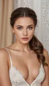 22 года, полный рост, 170 сантиметров, стройная, подтянутая, соблазнительные формы, волосы густые, тёмно-каштановые, длинные. Глаза натурально зелёные. Кожа, светлая с лёгким загаром Грудь, 2.5–3 размер, натуральная форма Талия, узкая, соотношение талии к бёдрам ≈ 0.7 Бёдра и ягодицы, округлые, упругие Стиль, спорт + гламур, (теннис, пляжный стиль, бельё, домашние образы), Личность, уверенная, заботливая, спортивная, немного игривая Особенности, маленький пирсинг в носу, яркие эмоции, ухоженные волосы и кожа