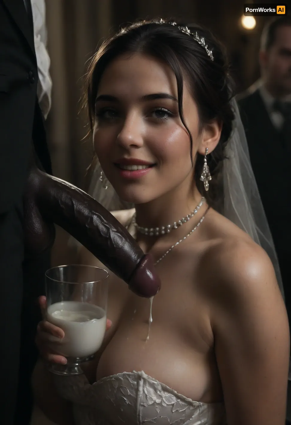 В самом сердце грандиозного свадебного заведения на сцене доминировал очень большой черный пенис. Счастливая пухлая персидская невеста в своем сексуальном свадебном платье занималась необычным ритуалом. Белый муж в костюме на заднем плане бесконтрольно плакал. Женщина держала чашку под черным петухом, ее глянцевая и липкая сперма заполняла прозрачную чашку до краев, на ней было написано «BBC Cum». Камь капала из углов ее губ, когда она пила сперму, практика, известная как гоккун.
