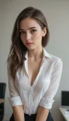 a very very very hot and sexy young secretary, an office lady, a stunningly beautiful and mesmerizing beauty, a seductive and stunning secretary, (a very very cute and charming face:1.6), stunningly beautiful petite microbody, cute tiny body, skinny, long hair, an office shirt, unbuttoned, shows pretty nude breasts, out, (huge round breasts:1.5), seductive look, (perfect eyes:1.1), (perfect skin:1.1), (perfect breasts:1.1), (perfect body:1.1), (perfect hands:1.1), (perfect finger:1.1), (perfect fingernails:1.1), Photorealistic, RAW, analog, best quality, 8k, HD, DSLR, Fujifilm XT3, film grain, award winning