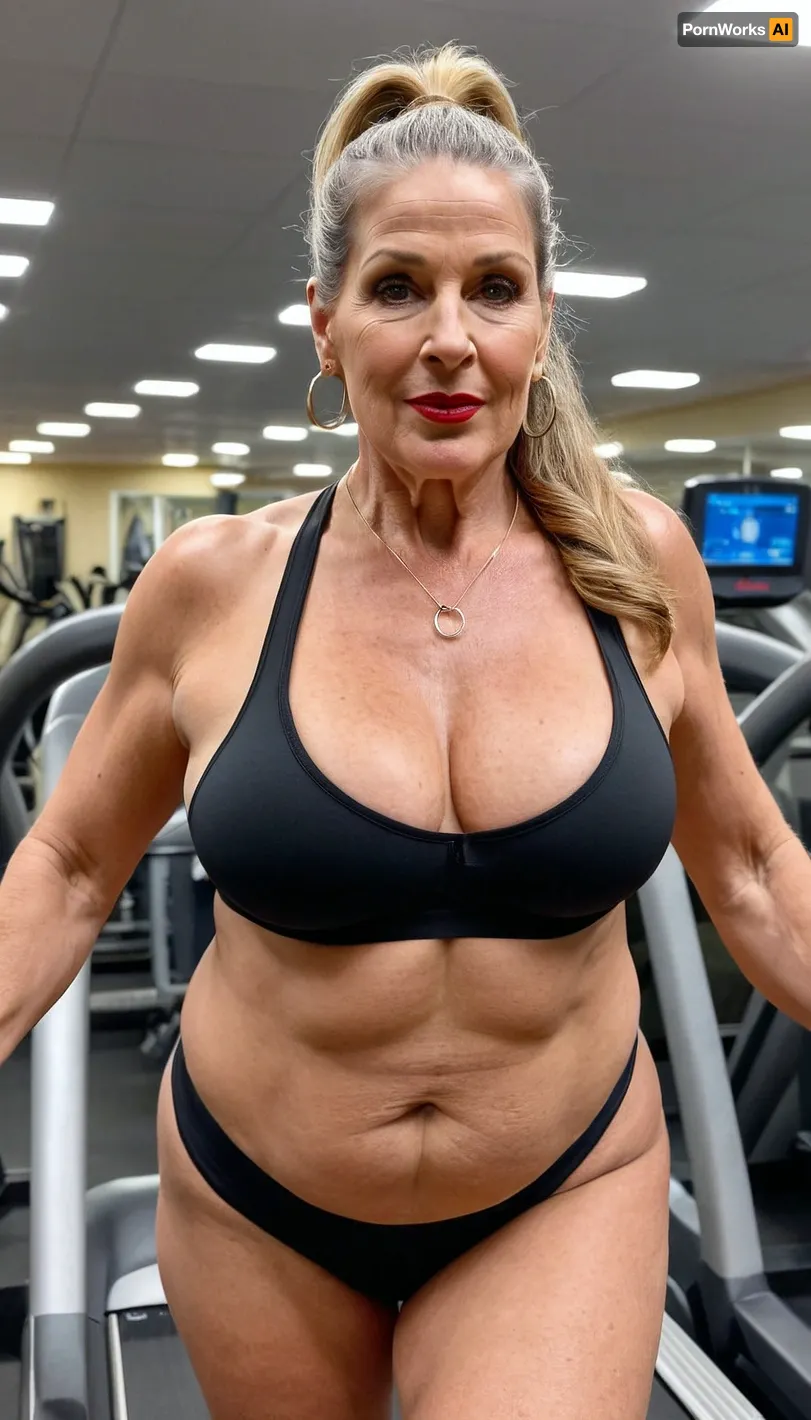 sexy mature, sexy 60 years old, dark blonde, ponytail long wave hair, fat chubby, thick body, very saggy tits, super saggy boobs, huge aureolas, sexy face, looking at the camera, big black eyes, wide jaw, long big chin, glamour, make up, hoop earrings, lipstick, at the gim, workout, very sweaty body, running at the treadmill, back view sexy mature, sexy 60 years old, dark blonde, ponytail long wave hair, fat chubby, thick body, very saggy tits, super saggy boobs, huge aureolas, sexy face, looking at the camera, big black eyes, wide jaw, long big chin, glamour, make up, hoop earrings, lipstick, at the gim, workout, very sweaty body, running at the treadmill, back view
