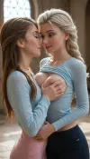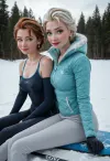 2 young women like Anna and Elsa in frozen, up shirt under their breasts, beautiful breasts, best grab breasts, cutout, smiling, happy 2 young women like Anna and Elsa in frozen, up shirt under their breasts, beautiful breasts, best grab breasts, cutout, smiling, happy