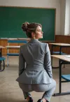 1 girl, 30 years, best quality, ultra-detailed, masterpiece, finely detailed, highres, 8k wallpaper, (very haircut), slim body, updo hair, light brown hair, large breasts, wearing grey woman's suit, squatting, towards school blackboard, classroom background, GapingAssholesAllFourQuiron, pose, all, fours, from, behind, spread, ass, very low squat, <lora:SpreadAssSDXL_v04:.7>, <lora:274698_training_data:.7>, <lora:SDXL1.0_quiron_GapingAssholesAllFour_v5.1p_Lora:.8>