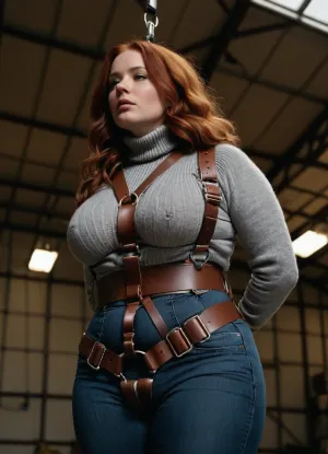 Плененная девушка с длинными радужными волосами и широкими голубыми глазами лежит на голом матрасе в тускло освещенном подземелье. Ее руки и ноги связаны черной веревкой, тени комнаты играют против ее безупречной кожи. Несмотря на ее затруднительное положение, она сохраняет атмосферу юношеской невинности, ее лицо почти фотореалистично и подробно. Темный фон подчеркивает интенсивность сцены, с замысловатыми деталями, фиксирующими каждую каплю пота и гладкие кривые ее тела. Ее маленькая грудь слегка поднимается, когда она ловит слабое дыхание, здание ожидания с каждым мгновением.