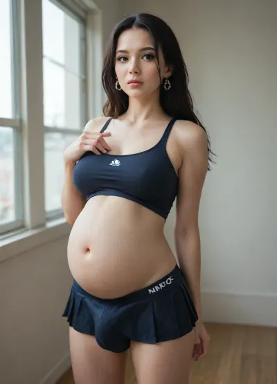 ИИ сгенерировал образ красивой крестьянки с красивым лицом и хвостиком, одетой в блузку полностью расстегнутой, обнажив твердый сосок и стройную фигуру. Ей 20 лет, у нее бледная кожа и маленькие очки. В средневековой замковой библиотеке она пожимает одну руку, стоя в кокетливой позе, возможно, чтобы привлечь внимание кого-то поблизости. Сцена установлена с солнечными лучами, текущими через витражи, добавляя чувство очарования и интриги.