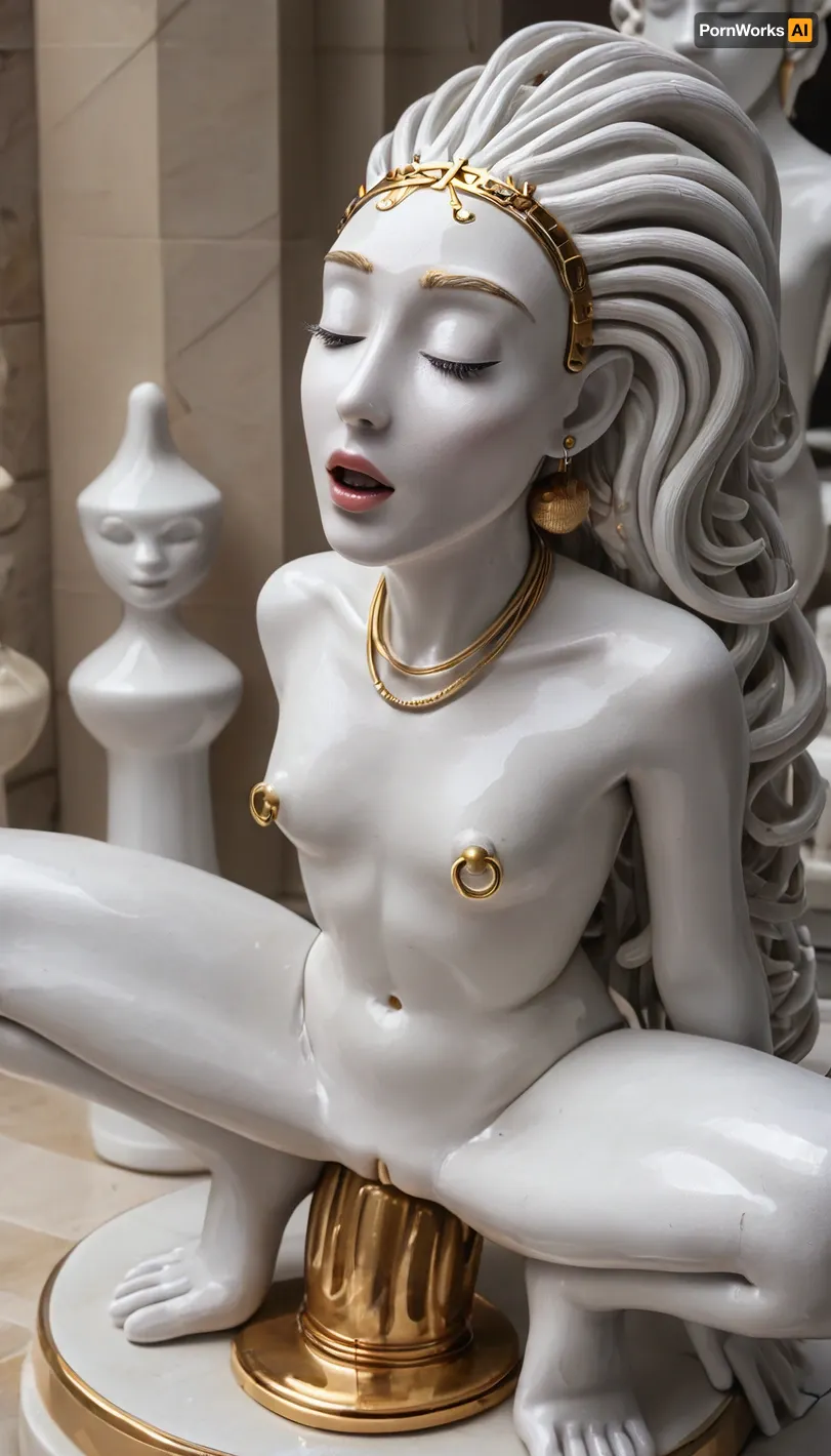 1 white ceramic porceline statue solo, 22 year old skinny female statue, closed eyes, (gold metal hair:1.5), made of porceline, ((detail she has fine white ceramic porceline skin:2), (detail white ceramic porceline female girl statue:1.1)), full body view, squatting, naked, intense excited expression, (detail huge gold metal nipple ring:1.2), white ceramic porceline, femal masturbation, head back, open mouth, ((focus detail decorative golden anal dildo:1.5)), (All white ceramic porceline girl), (flatchest), (skinny), (white porceline skin:1.5), high view, white ceramic porceline girl, d3qck, artstyle, <lora:d3qck artstyle:2> 1 white ceramic porceline statue solo, 22 year old skinny female statue, closed eyes, (gold metal hair:1.5), made of porceline, ((detail she has fine white ceramic porceline skin:2), (detail white ceramic porceline female girl statue:1.1)), full body view, squatting, naked, intense excited expression, (detail huge gold metal nipple ring:1.2), white ceramic porceline, femal masturbation, head back, open mouth, ((focus detail decorative golden anal dildo:1.5)), (All white ceramic porceline girl), (flatchest), (skinny), (white porceline skin:1.5), high view, white ceramic porceline girl, d3qck, artstyle, <lora:d3qck artstyle:2>