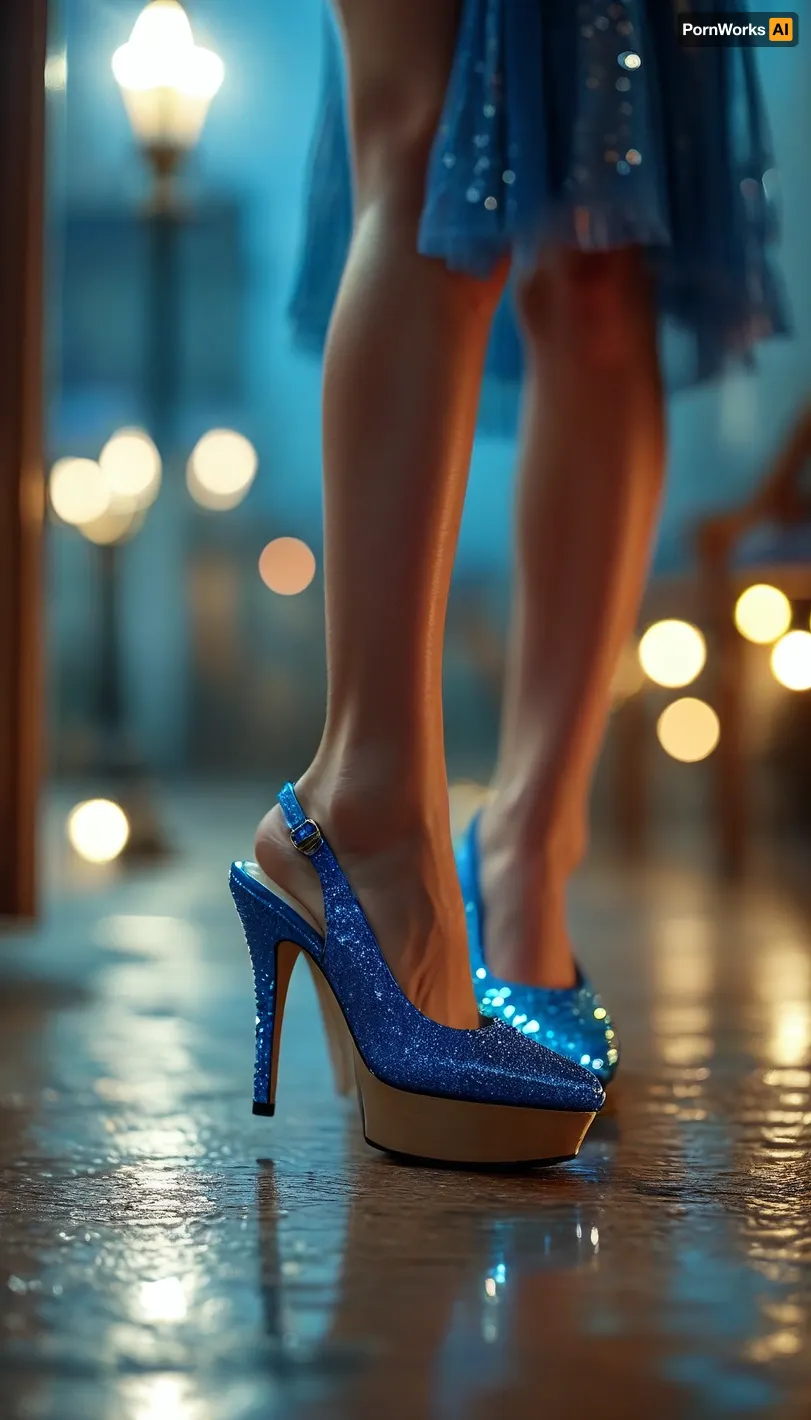 (Shoes {slingback}{blue}{sparkling}{no hosiery})