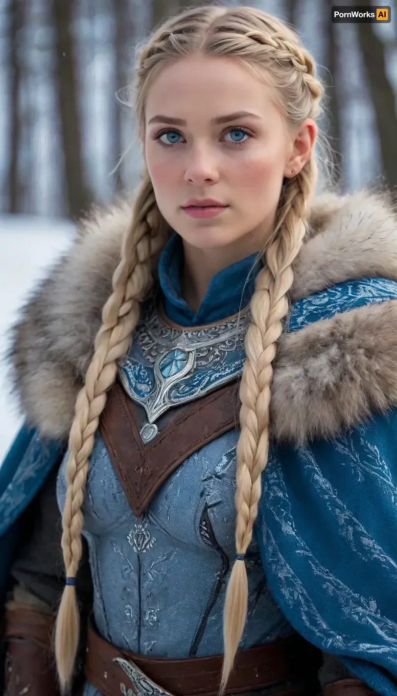 A fiercely proud Nordic girl stands, her presence exuding unwavering strength. Her blonde braids cascade down her back, framing a face marked by determination and resilience. This stunning full body captures her piercing blue eyes, reflecting the icy landscapes of her homeland. The intricate details of her embroidered Viking armor and fur-lined cloak speak of her warrior spirit. This high-quality painting seamlessly combines power and grace, drawing the viewer into the captivating story of a fierce Nordic warrior princess. body manipulations, divine proportion, non-douche smile, gaze into the camera, holographic shimmer, whimsical lighting, enchanted ambiance, soft textures, imaginative artwork, ethereal glow, silent Luminescence, whispering Silent, iridescent Encounter, vibrant background, full body, rule of thirds, high quality, high detail, high resolution, bokeh, backlight, long exposure, <lora:Microwaist_XL_v01:1.5>, <lora:EnvyZoomSliderXL01:.2>, <lora:clothing_slider_v19_000000030:-2>