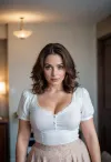 Woman, One, 32 Years old, White, ambar eyes, Fat, Big breasts, Big ass, Beauty face, Makeup, Brunette hair, Medium hair, Fluffy hair, Blouse, Cotton shorts, Portrait, Standing Woman, One, 32 Years old, White, ambar eyes, Fat, Big breasts, Big ass, Beauty face, Makeup, Brunette hair, Medium hair, Fluffy hair, Blouse, Cotton shorts, Portrait, Standing