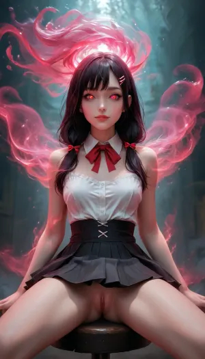 AI, simetrik özellikler ve yeşil gözlerle güzel, son derece ayrıntılı bir yüz görüntü üretti. Kadın uzun sarışın saçları var ve altında küçük g-string ile güzel bir siyah lace yüksek sıkıları giyiyor. O, beyaz sahte tavşan kulakları ve bir choker ile birlikte, onun nipples'i kara kalbi ile kırmızı bir ters bir boğa giyiyor. Onun kıyafeti lacy yüksek topu ve eldivenler ile beyaz bileği cuffs ile tamamlandı. Sahne, yakındaki bir kutupla bir striptiz kulübü dans pistinde ayarlanır. Kadın mutluluk durumunda, yaramaz bir yüzü, açık bir ağız ve bir blush ile görülür. Aydınlatma serttir, foton ham kalitesini vurgulamak için ortaya çıkan ayrıntılarla.