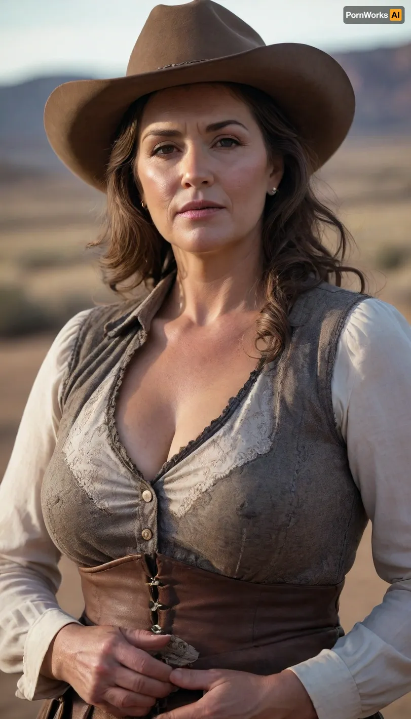 Old West Cowboy A beautiful curvy mature mommy, holding winchester in her arms, sweaty Old West Cowboy A beautiful curvy mature mommy, holding winchester in her arms, sweaty