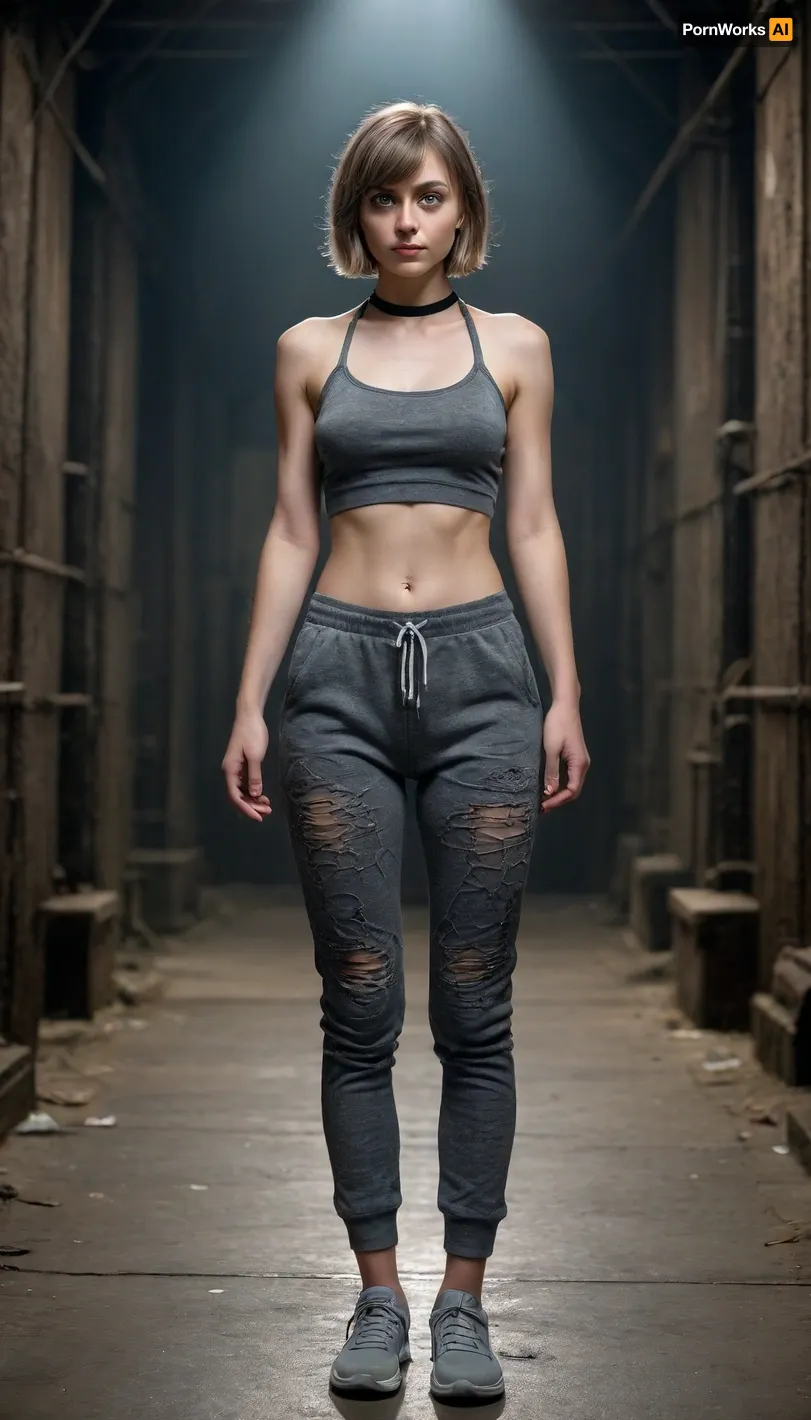 1 Girl, (25 Years old, FULL BODY, Clonated face), (FLAT CHEST, Very thin, Very pale), (Big blue eyes, Glowing eyes), (Short hair, Bob cut, Black ahir), (In a dark dungeon filled with cobwebs), (Sexy gray halter top with cat print, gray sweatpants, sneakers), (Extrem long shot, Panoramic shot of her, FULL BODY) 1 Girl, (25 Years old, FULL BODY, Clonated face), (FLAT CHEST, Very thin, Very pale), (Big blue eyes, Glowing eyes), (Short hair, Bob cut, Black ahir), (In a dark dungeon filled with cobwebs), (Sexy gray halter top with cat print, gray sweatpants, sneakers), (Extrem long shot, Panoramic shot of her, FULL BODY)