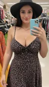 Raw picture, iPhone 15 pro photo, warm light, Andrea average young woman with black hair, 32 years old, brown skin, looking at the camera, smiling, small perky boobs, dark nipples, slim, brown necklace, taking a selfie in a department store fitting stall, flashphoto, dark tanlines, showing her bra, dark light, skin detailed with skin imperfections, short bright colored floral sun dress