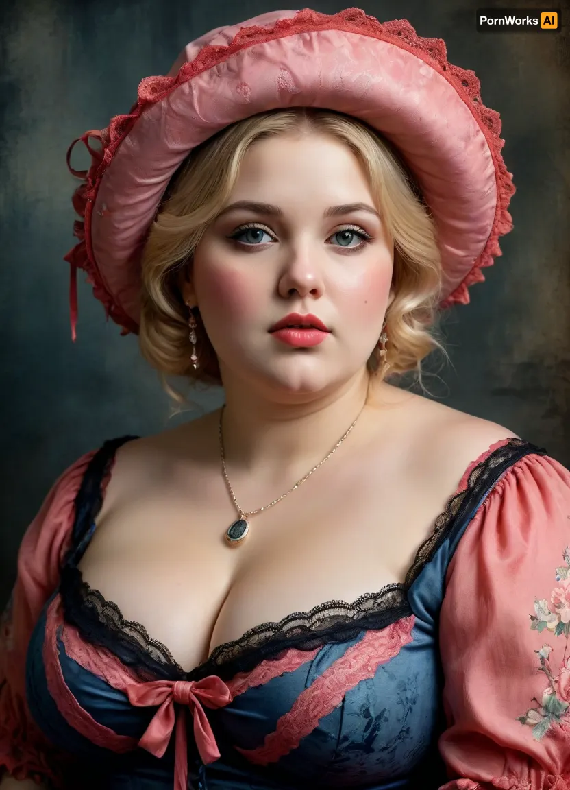Portrait, close-up, 8k, RGB, HDR, oil paints, watercolors, bright saturated colors, Anna Razumovskaya, Jarek Kubicki, Aleksi Brilo, Darek Zabrotsky, Sakimichan, Loisch, Aminola Rezai, photo RAW, black, dark red, (massive bust), Mixed media collage., (chubby beautiful face), ., ((Obese plumper woman:1.3)), wide cheekbones, wide jawline, Calligraphy, gouache wash, pen sketch, thin lines, vintage illustration style. Black, white, coral pink, red, blonde hair, beautiful patterns, ral-melting, whdbd, blue, dress, flirting with viewer, jewelry, necklace, bonnet, long, sleeves, bow, lace, trim, frills, pantyhose, <lora:ral-melting-sdxl:.5>, <lora:whdbd XL:.8> Portrait, close-up, 8k, RGB, HDR, oil paints, watercolors, bright saturated colors, Anna Razumovskaya, Jarek Kubicki, Aleksi Brilo, Darek Zabrotsky, Sakimichan, Loisch, Aminola Rezai, photo RAW, black, dark red, (massive bust), Mixed media collage., (chubby beautiful face), ., ((Obese plumper woman:1.3)), wide cheekbones, wide jawline, Calligraphy, gouache wash, pen sketch, thin lines, vintage illustration style. Black, white, coral pink, red, blonde hair, beautiful patterns, ral-melting, whdbd, blue, dress, flirting with viewer, jewelry, necklace, bonnet, long, sleeves, bow, lace, trim, frills, pantyhose, <lora:ral-melting-sdxl:.5>, <lora:whdbd XL:.8>