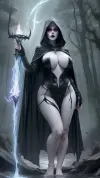sorceress, ((huge tits)), (nude), white skin, pale skin, wet skin, magic symbols on the body, big breasts, (busty), pussy, legs, goth, black cloak, black hood, glowing white eyes, magic, dark forest, nighttime, clouds sorceress, ((huge tits)), (nude), white skin, pale skin, wet skin, magic symbols on the body, big breasts, (busty), pussy, legs, goth, black cloak, black hood, glowing white eyes, magic, dark forest, nighttime, clouds