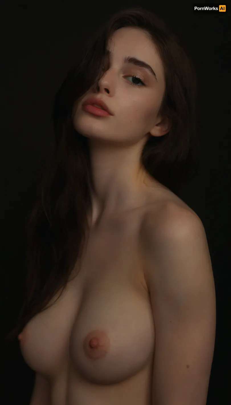 ziprealism, (intimate sensual esthetic, artistic study of feminine allure), (seductive girlfriend, sensual expression, sensual eye contact:1.2), (f/2.8, shallow depth of field:1.2), (medium full shot, shot in profile, view from side, lips focus:1.6), (subtle bokeh:.4), (stark black hair, very long hair, straightened hair, hair obscuring face:1.4), (full lips, soft pillowed lips, moist lips, vibrant lipstick color, color shock, natural skin texture:1.4), (cozy bedroom), (large natural breasts, teardrop breasts, pale skin, soft breasts:1.6), (slender body, slim belly, prominent hip bones:1.4), igbaddie, <lora:style_lora_realis:.4>, <lora:igbaddie-XL:.4>, (dark, chiaroscuro, black backdrop:1.8), <lora:zavy-cntrst-sdxl:1.4>
